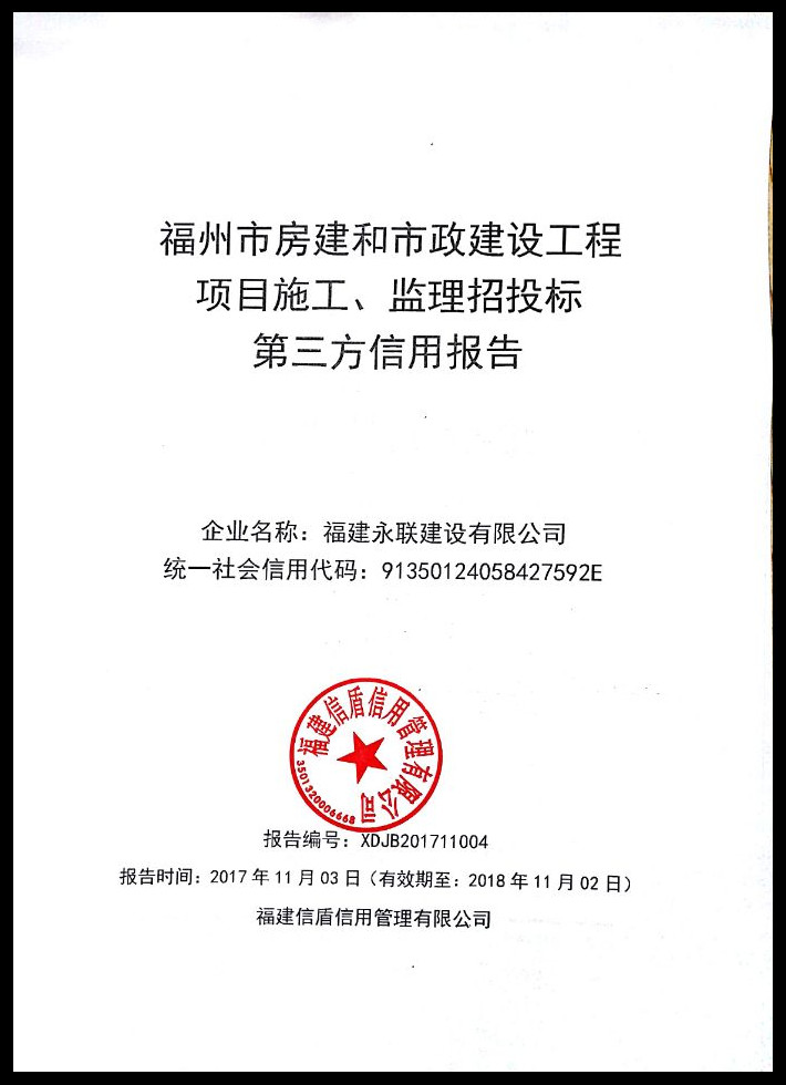 福建永聯建設有限公司 XDJB201711004
