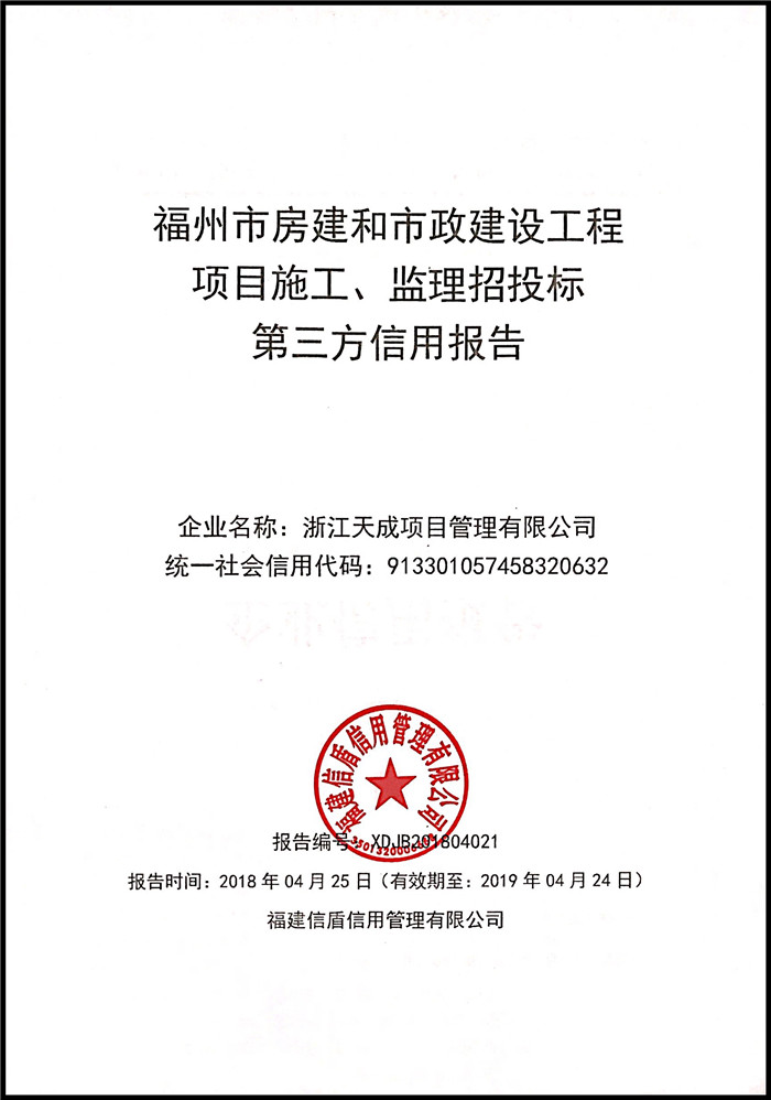 浙江天成項目管理有限公司 XDJB201804021