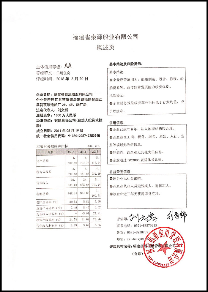 福建省泰源船業有限公司 XDPJ201803159