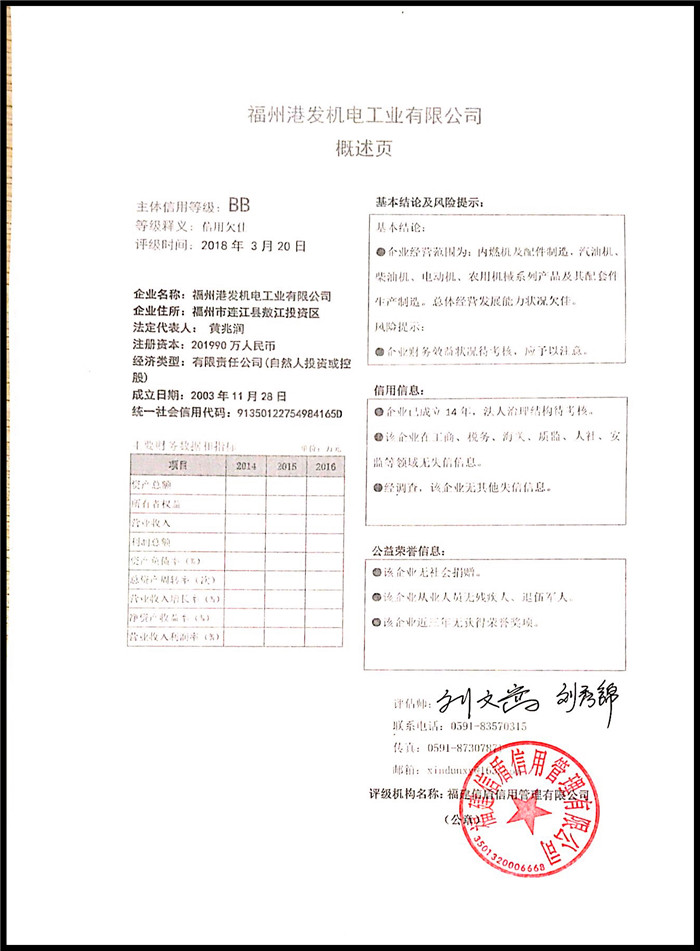 福州港發機電工業有限公司 XDPJ201803169
