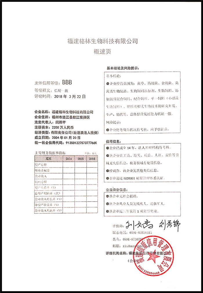 福建格林生物科技有限公司 XDPJ201803175