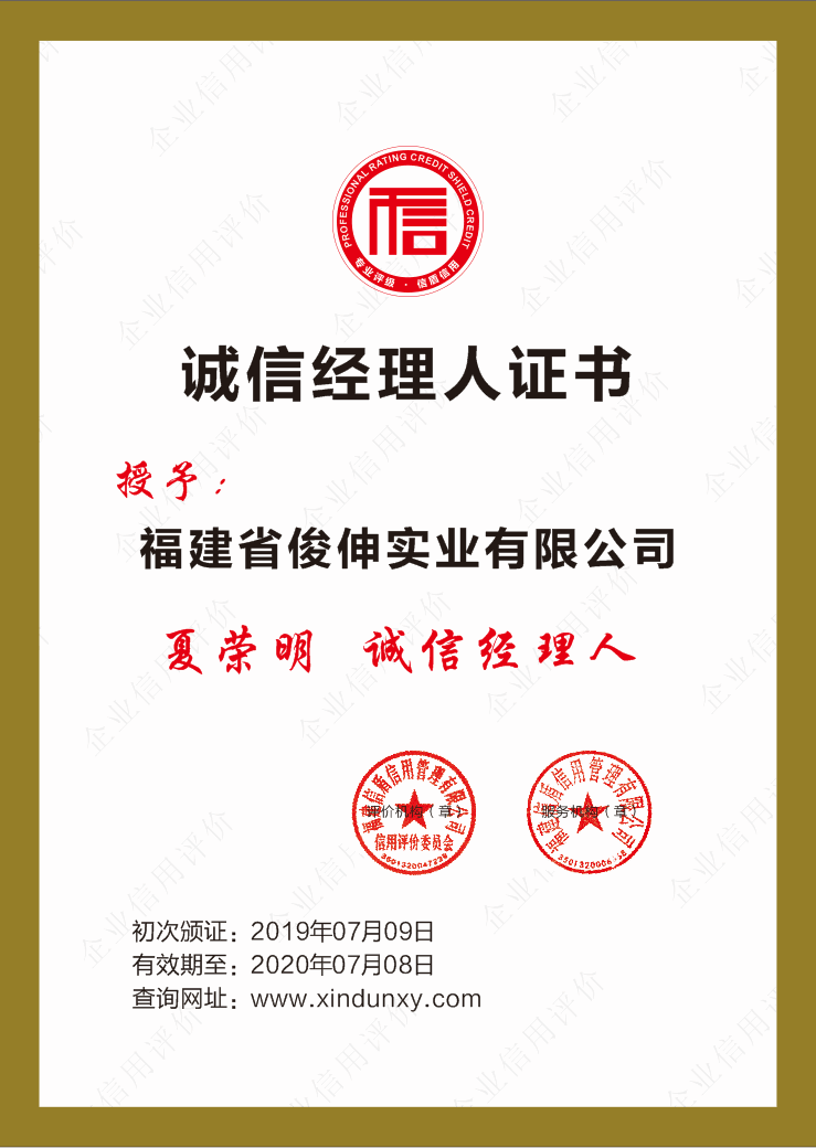 誠信經(jīng)理人證書