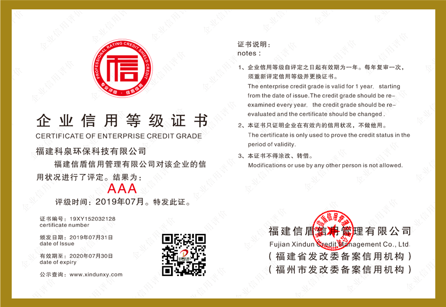 企業信用等級證書